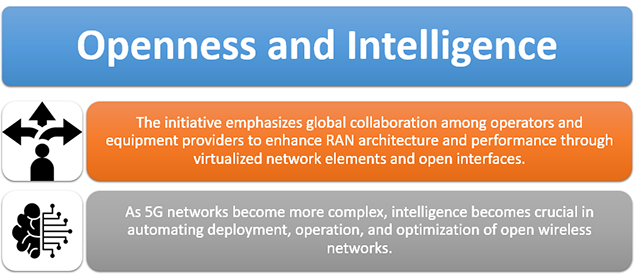 O-RAN Alliance Architecture The O-RAN Alliance is driving a transformation in mobile networks by breaking them down into smaller parts – RU, DU, and CU components, along with different hardware platforms and software. This shift creates a more diverse ecosystem for building RAN infrastructure, moving away from the old vendor-specific solutions. With Open RAN, operators can pick and choose hardware and software from different suppliers, giving them more flexibility and scalability. It works with all mobile technology generations, from 2G to 5G and beyond. In addition to meeting 3GPP standards, O-RAN is pushing RAN capabilities towards openness and intelligence, offering key features like: