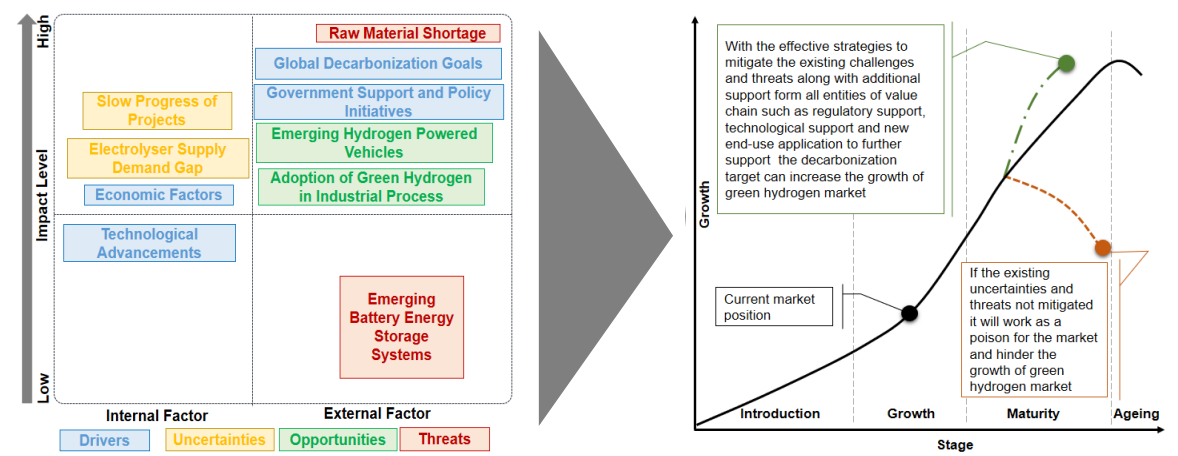 Green hydrogen is emerging as a key pillar in the global transition to clean energy, playing a crucial role in decarbonizing industries and enhancing energy security. As governments worldwide push for ambitious net-zero targets, the demand for green hydrogen is accelerating, driven by advancements in electrolyzer technology, falling renewable energy costs, and increasing private and public investments. Regions such as China, India, and Europe are experiencing rapid capacity expansions, with supportive policy frameworks and corporate commitments fueling growth. However, challenges such as high production costs, supply chain limitations, and slow project implementation continue to hinder large-scale adoption. This report provides an in-depth analysis of the green hydrogen market’s dynamics, highlighting key drivers, uncertainties, opportunities, and threats that shape its trajectory. . By analyzing global production forecasts, technology advancements, and policy developments, the report provides a roadmap for businesses, investors, and policymakers to leverage green hydrogen as a key enabler of the clean energy transition.
