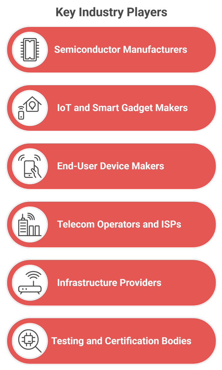 The rollout and success of Wi-Fi 7 depends on a large community of contributors each of whom play a key role in different aspects of the value chain, which includes chipsets, devices, infrastructure, and certification. Key ecosystem enablers include: