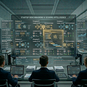 The platform organizes startup intelligence through structured company profiles, benchmarking models, and comparative dashboards designed to reveal emerging competitive dynamics.